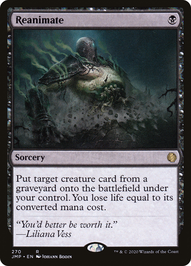 Put target creature card from a graveyard onto the battlefield under your control. You lose life equal to that card's mana value.